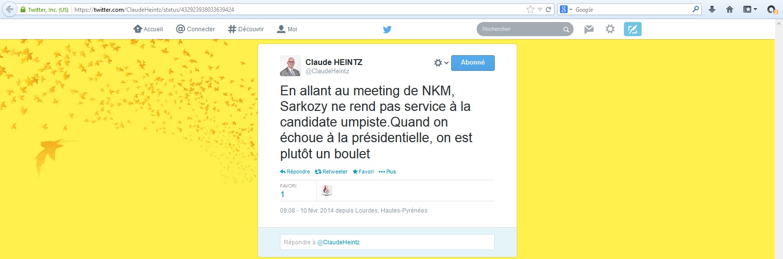 Plus amusant, il a affirmé que Sarkozy n’avait « pas rendu service » à NKM en allant à son meeting, parce que « quand on échoue à une présidentielle, on est plutôt un boulet ». Marine Le Pen est-elle aussi un boulet pour le FN ? Il a aussi repris le faux-tract de Mélenchon (écrit par le Front national) un an et demi après que les faits aient été révélés, alors que le procès faisait l’actualité à ce moment-là.