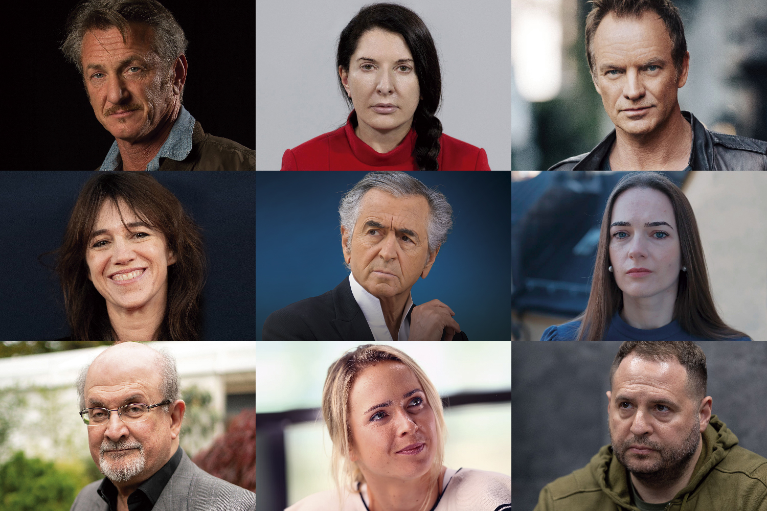 Les premiers signataires de cet appel sont Marina Abramovic, Charlotte Gainsbourg, Bernard-Henri Lévy, Oleksandra Matviichuk, Sean Penn, Salman Rushdie, Sting, Elina Svitolina et Andriy Yermak.