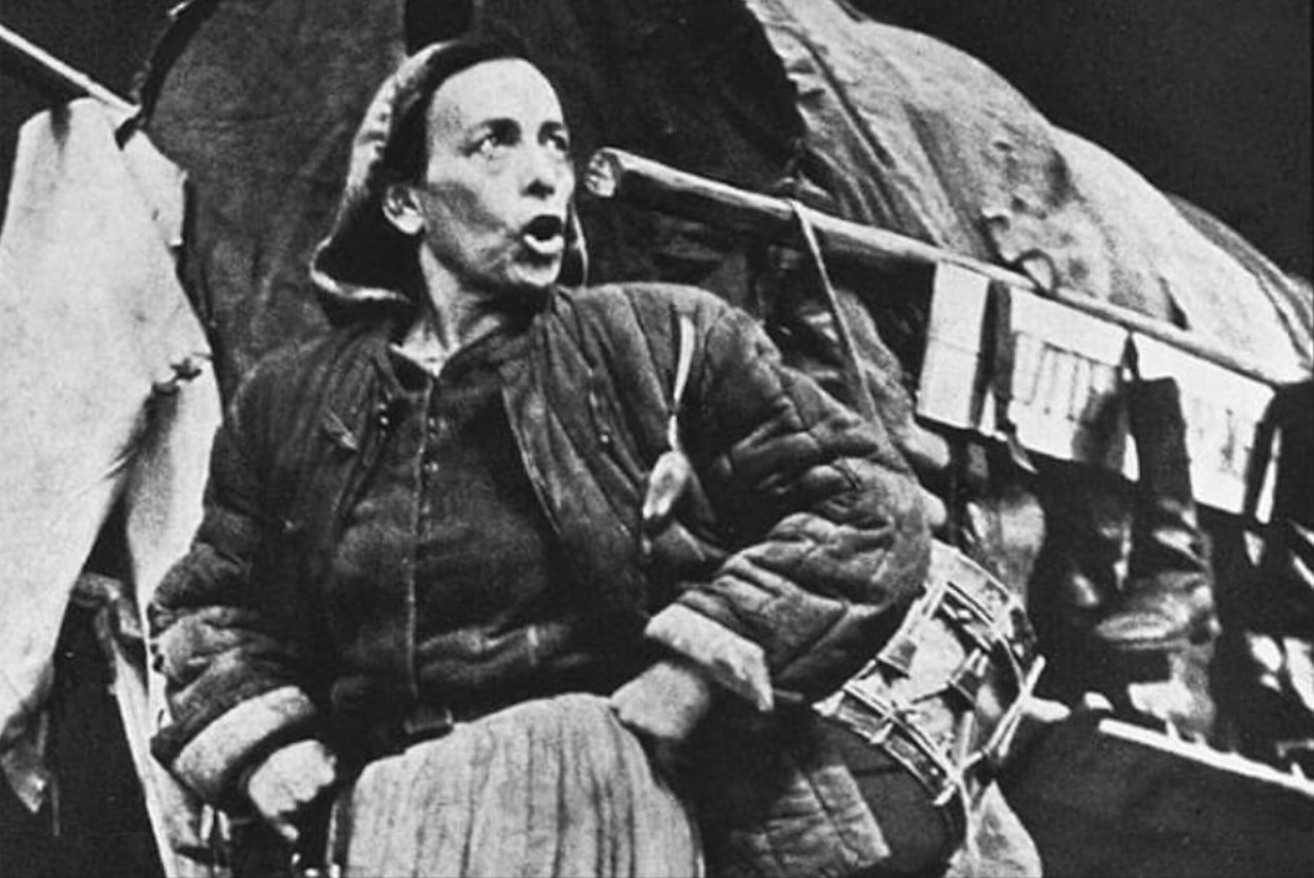 C’est un hymne pacifiste, où Mère Courage – figure propre à toutes les guerres – se retrouve seule avec son chariot branlant… Une allégorie de la Seconde Guerre mondiale. Mère Courage utilise (comme me l’a soigneusement expliqué Helene BB) le Verfremdungseffekt (effet de distanciation) pour éviter la catharsis et permettre au public de comprendre ses actions et les conséquences de la guerre. Selon elle, le personnage de la mère représente l’alliance entre la guerre et le commerce, où la cupidité mène à des pertes irréparables. Le public devrait réagir avec indignation face à la futilité de la guerre et non éprouver de la pitié émotionnelle pour Mère Courage, disait-elle.